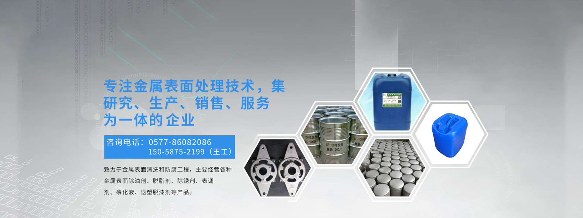 溫州龍飛環??萍加邢薰臼墙饘俦砻嫣幚砑夹g集研究、生產、銷售、服務為一體的高新科技企業,致力于金屬表面清洗和防腐工程,主要經營各種金屬表面除油劑、脫脂劑、除銹劑、表調劑、磷化液、退塑脫漆劑、除蠟水、防銹水防銹油、封閉劑、鈍化劑、發黑劑、著色劑、化學拋光劑、合成乳化劑、水處理劑等金屬表面處理劑,廣泛適用于產品的噴塑、噴漆、噴砂、電泳、電鍍前的表面處理以及表面終處理,現已涉通用機械零部件、汽摩配件、五金及電工工具、電器電腦、潔具閥門、教學儀器等。